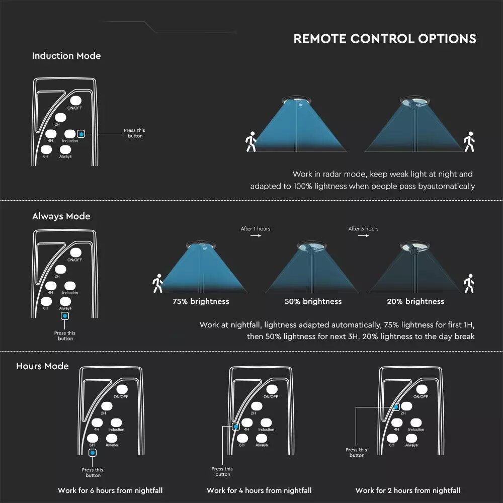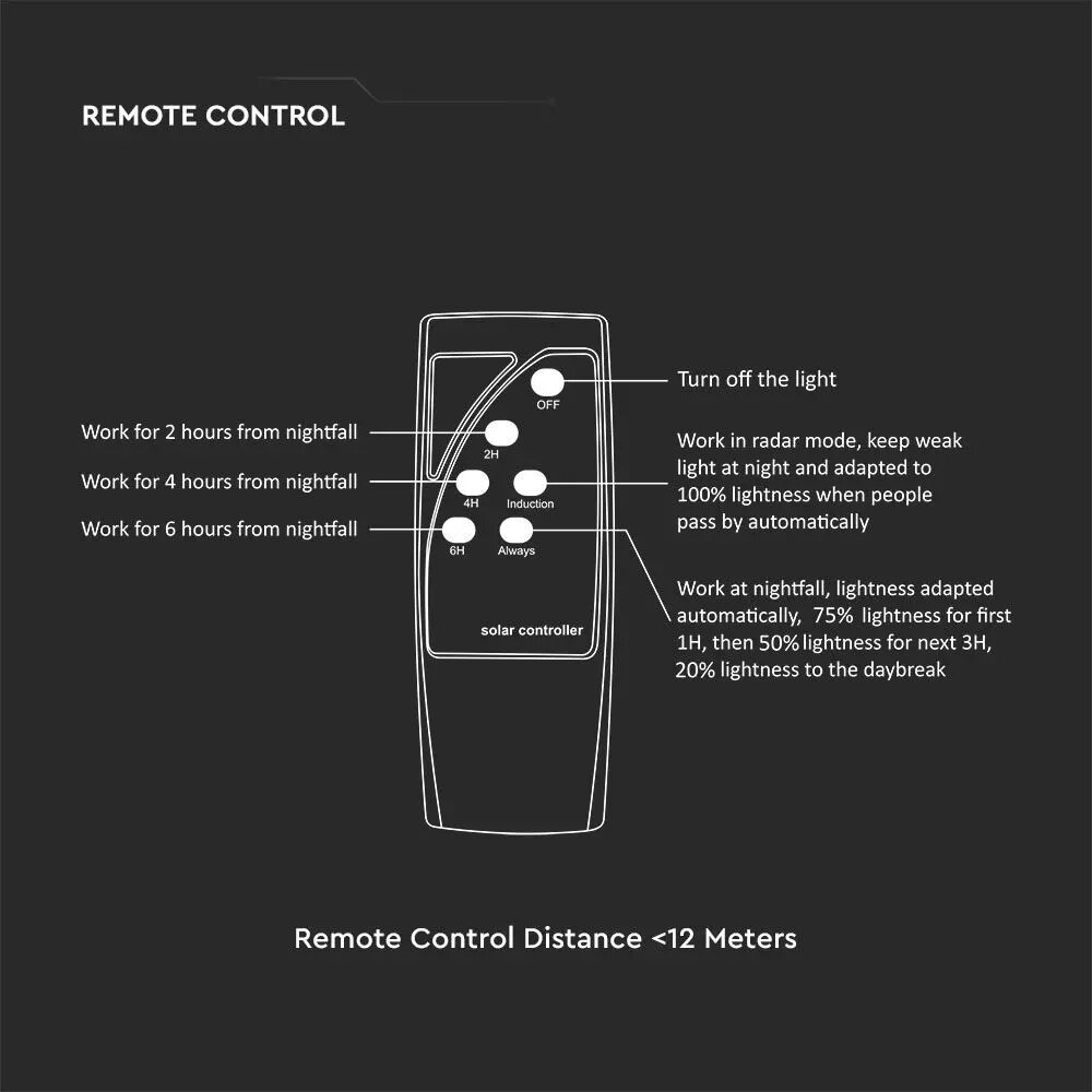 Ηλιακό Φωτιστικό για κολώνα Κήπου LED 10W 6500K Μαύρου Χρώματος με Αισθητήρα RF και Χειριστήριο IP65 V-TAC – 5153