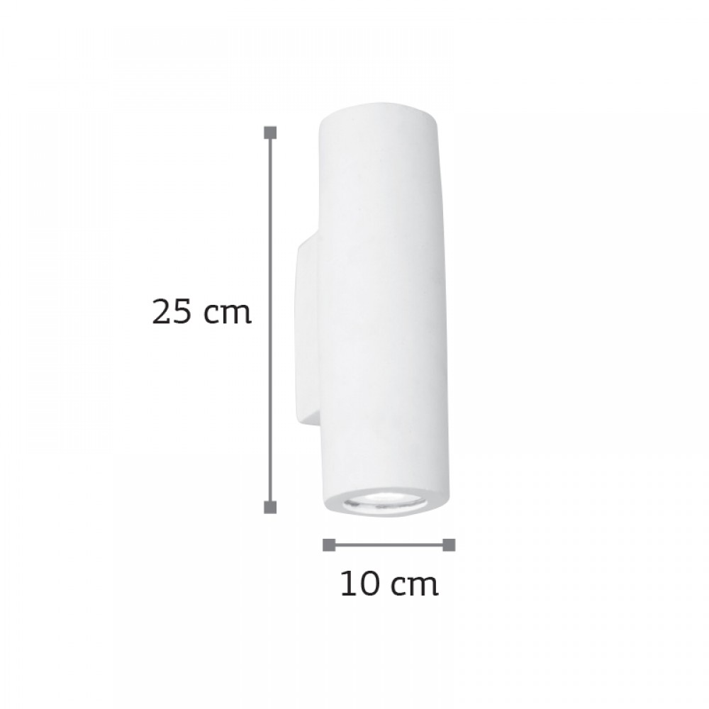 Πρόκειται για ένα επιτοίχιο φωτιστικό κατασκευασμένο από γύψο. Επιδέχεται δύο λαμπτήρες που του επιτρέπει να φωτίζεται και από τις δύο πλευρές. Τοποθετείται σε κολόνες για να φωτιστούν. Μπορεί επίσης να τοποθετηθεί σε οριζόντια θέση! Το λευκό του χρώμα το καθιστά ιδανική επιλογή για νησιωτικούς χώρους. Όντας κατασκευασμένο από γύψο, επιδέχεται βαφή.