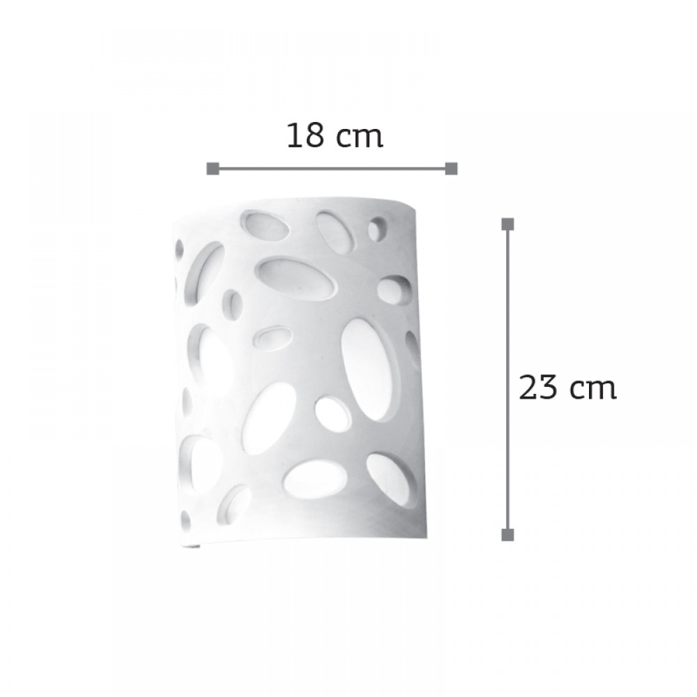 Πρόκειται για ένα επιτοίχιο φωτιστικό κατασκευασμένο από γύψο. Ο σχεδιασμός του επιτρέπει την τοποθέτησή του τόσο σε οικιακούς όσο και επαγγελματικούς χώρους, εστίασης και ξενοδοχεία. Το λευκό του χρώμα το καθιστά ιδανική επιλογή για νησιωτικούς χώρους. Όντας κατασκευασμένο από γύψο, επιδέχεται βαφή.
