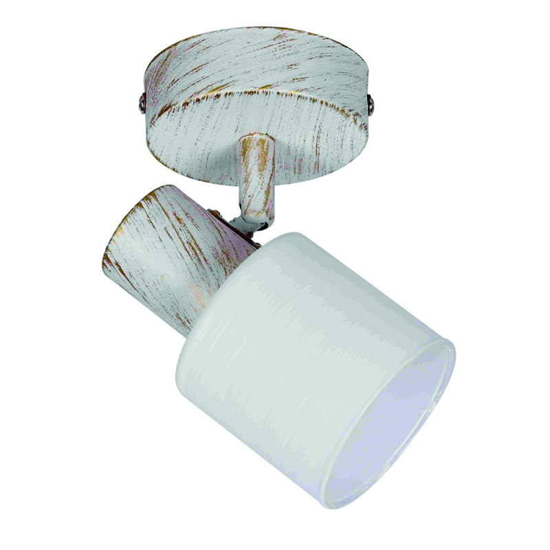 Πρόκειται για ένα μεταλλικό σποτ σε απόχρωση λευκής πατίνας με έναν λαμπτήρα. Το λευκό γυαλί επιτρέπει στο φως να διαχέεται ομοιόμορφα στον χώρο. Το μπροστινό μέρος του κινείται προς οποιαδήποτε κατεύθυνση.