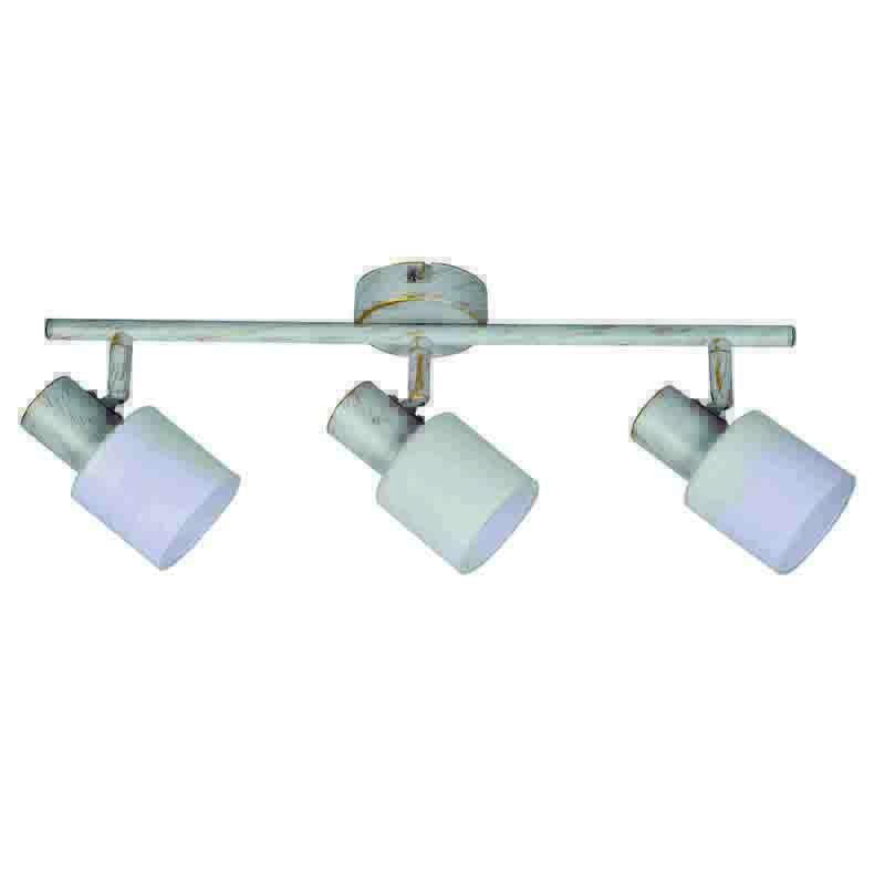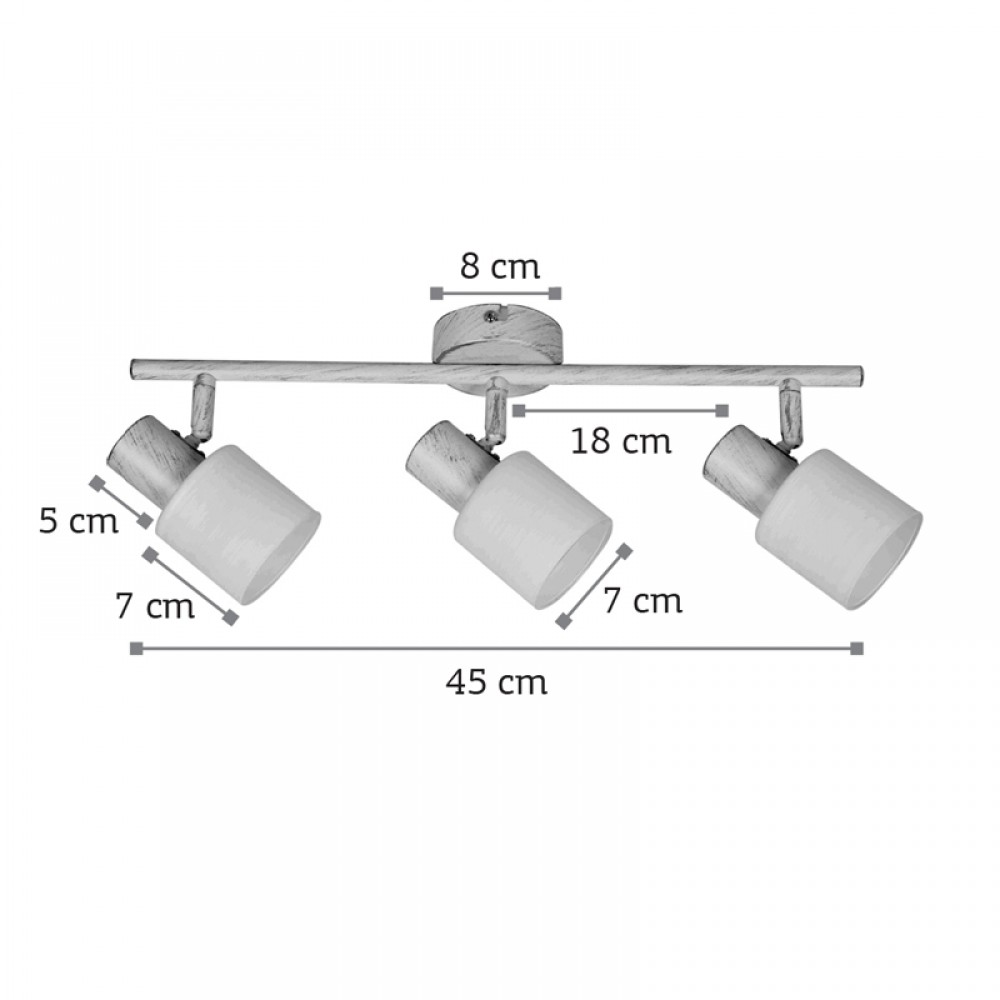 Πρόκειται για ένα μεταλλικό σποτ σε απόχρωση λευκής πατίνας με τρεις λαμπτήρες. Το λευκό γυαλί επιτρέπει στο φως να διαχέεται ομοιόμορφα στον χώρο. Το μπροστινό μέρος του κινείται προς οποιαδήποτε κατεύθυνση.