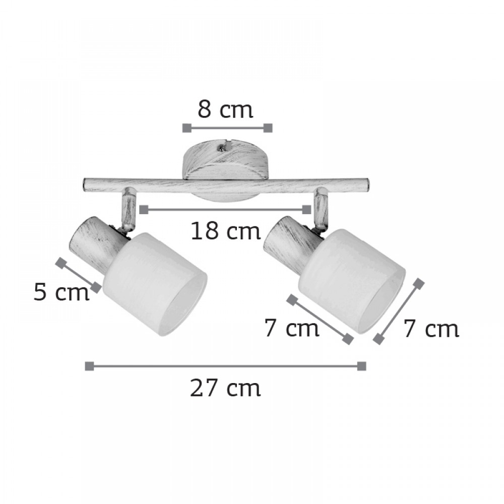 Πρόκειται για ένα μεταλλικό σποτ σε απόχρωση λευκής πατίνας με δύο λαμπτήρες. Το λευκό γυαλί επιτρέπει στο φως να διαχέεται ομοιόμορφα στον χώρο. Το μπροστινό μέρος του κινείται προς οποιαδήποτε κατεύθυνση.