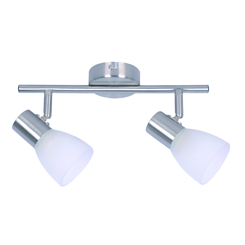 Πρόκειται για ένα επιτοίχιο μεταλλικό σποτ σε νίκελ ματ απόχρωση με δύο λαμπτήρες. Το λευκό γυαλί επιτρέπει στο φως να διαχέεται ομοιόμορφα στον χώρο. Το μπροστινό μέρος του κινείται προς οποιαδήποτε κατεύθυνση.