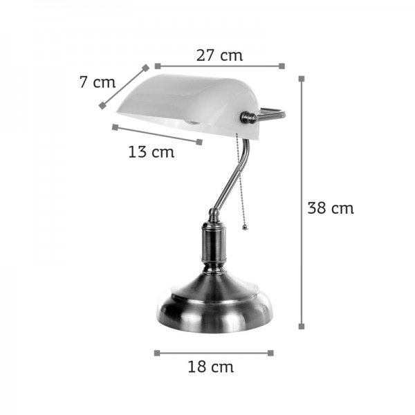 Πρόκειται για ένα οξυντέ μεταλλικό φωτιστικό συνδυασμένο με πράσινο γυαλί. Η σχεδίασή του το τοποθετεί σε κλασσικούς χώρους.