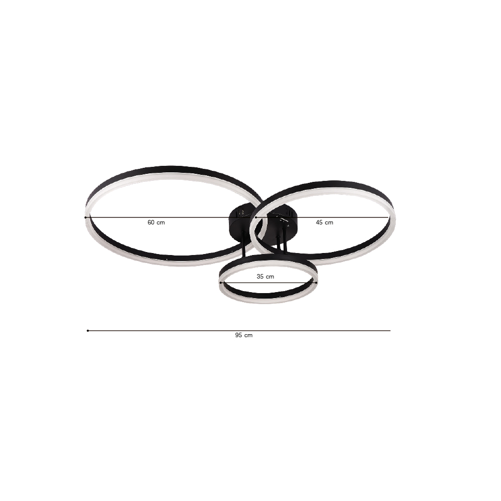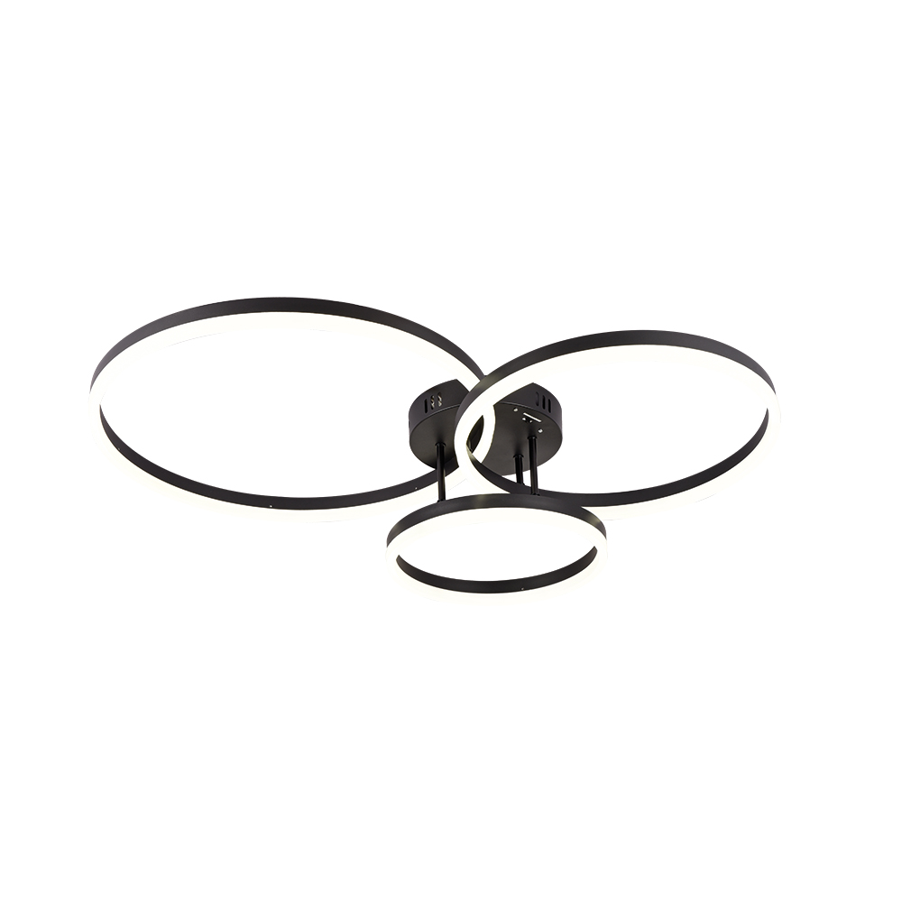 Φωτιστικό οροφής LED 75W σε μαύρη απόχρωση με επιλογή απόχρωσης φωτισμού απο διακόπτη που βρίσκεται στην βάση του φωτιστικού (3CCT by switch on base) .Το προϊόν ντιμάρεται απο απλό διακόπτη τοίχου με εναλλαγή στο πάτημα (3 step dimmable)