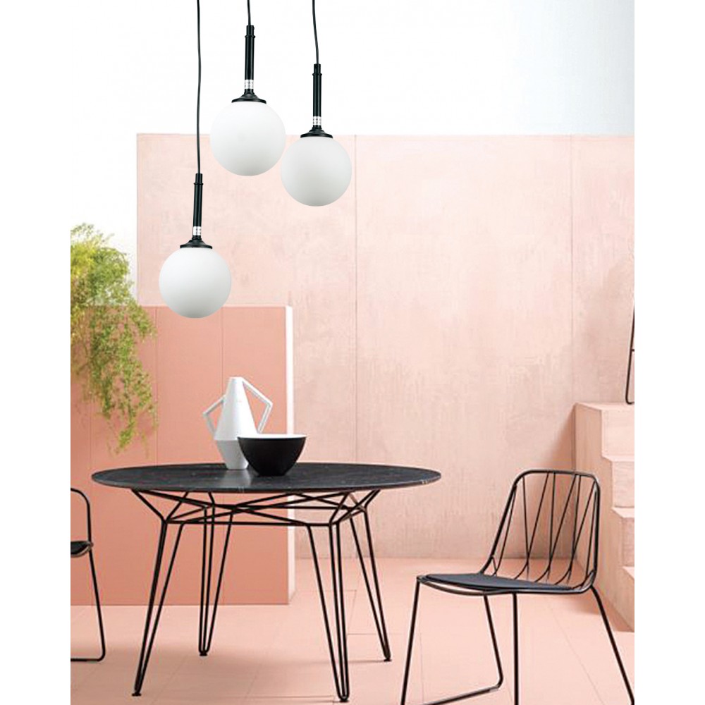 InLight Κρεμαστό φωτιστικό από χρώμιο μέταλλο και λευκή οπαλίνα (4515-3 ΡΟΖΕΤΑ)