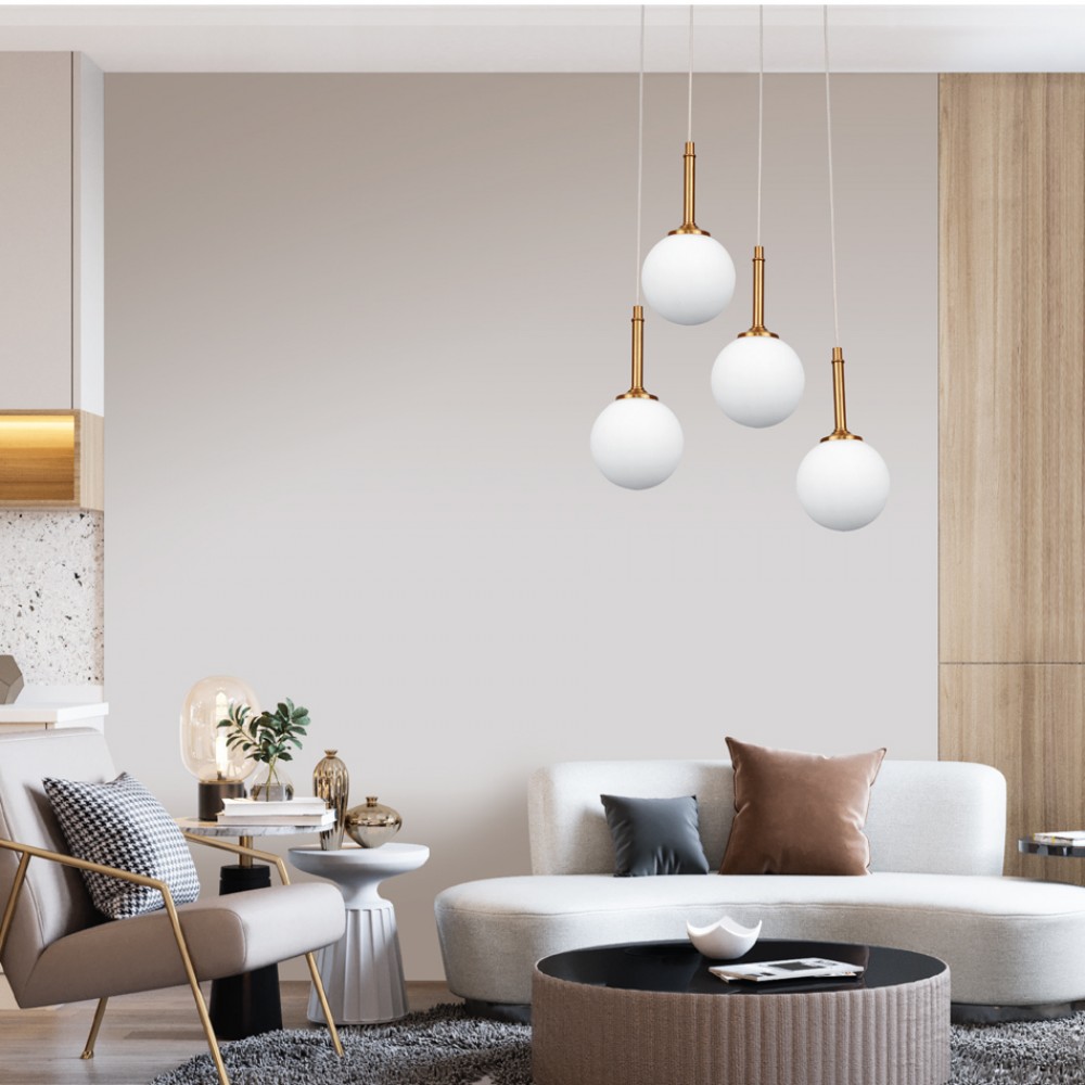 InLight Κρεμαστό φωτιστικό από χρυσαφί μέταλλο και λευκή οπαλίνα 4XG9 D:30cm (4016-4-ROSETTE)