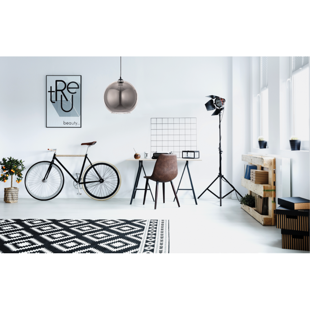 Πρόκειται για ένα κρεμαστό φωτιστικό αποτελούμενο από φιμέ γυαλί ανοιχτό στο κάτω μέρος του. Η μαύρη του ανάρτηση ρυθμίζεται για να προσαρμόζεται στον κάθε χώρο.
