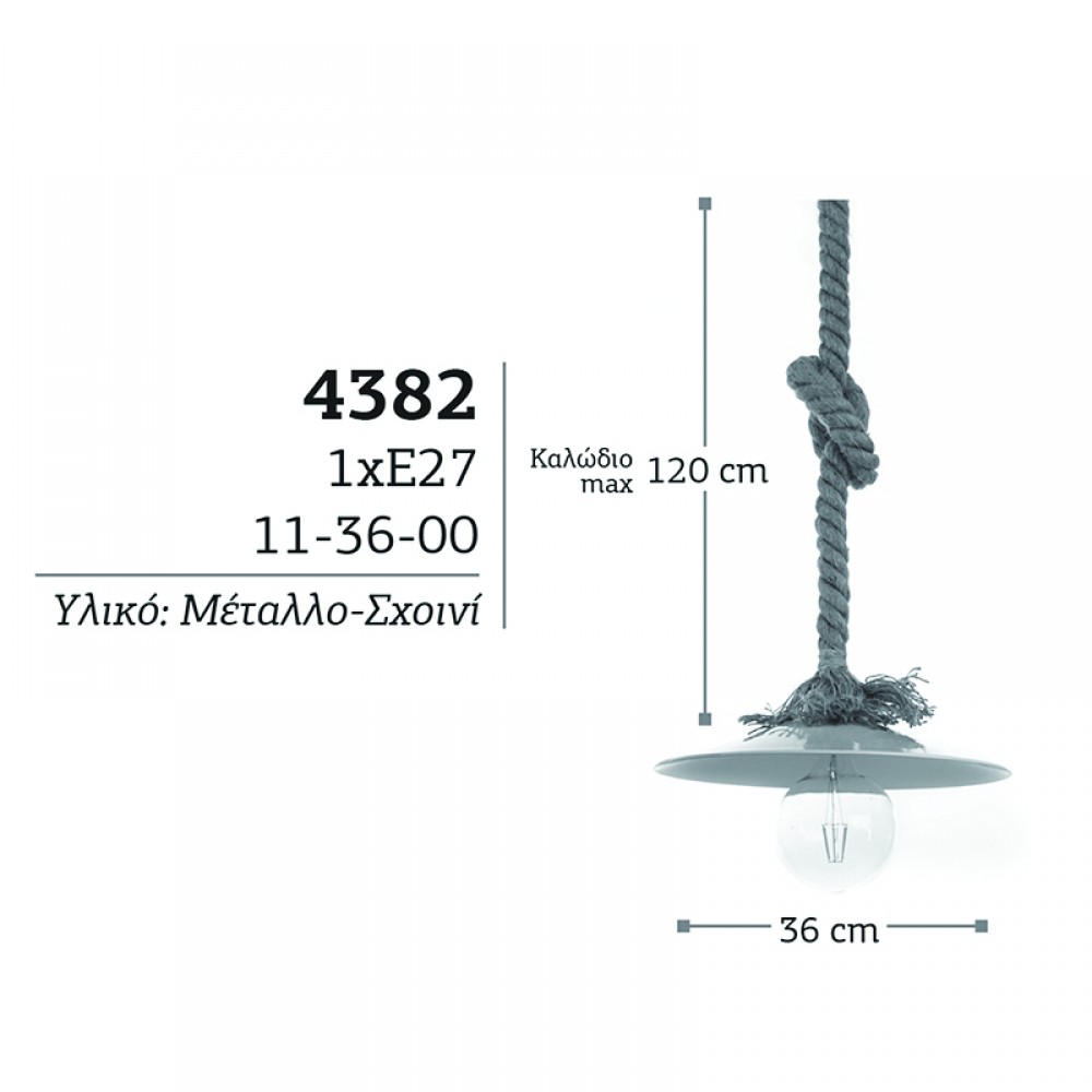 InLight Κρεμαστό φωτιστικό από καφέ σχοινί και λευκό μέταλλο (4382-WH)