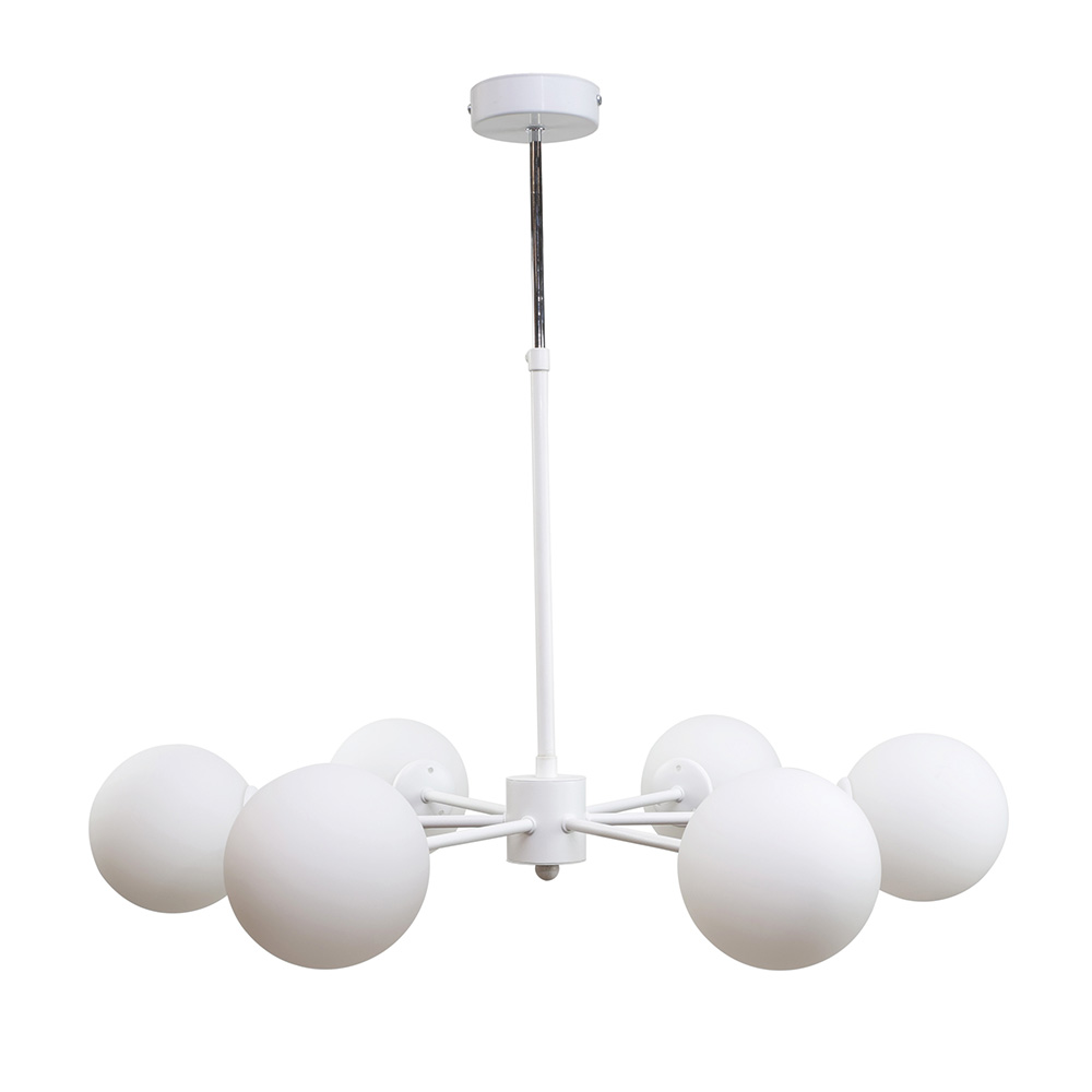 InLight Κρεμαστό φωτιστικό από λευκό μέταλλο και λευκή οπαλίνα 6XG9 D:70cm (5012-6)