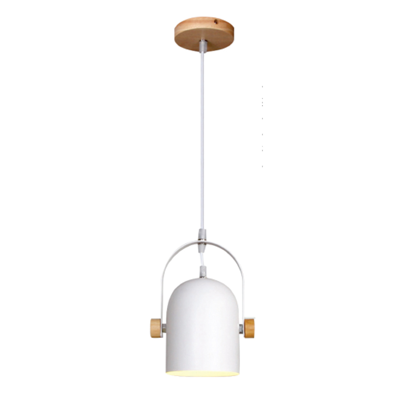 Πρόκειται για ένα κρεμαστό φωτιστικό κατασκευασμένο από λευκό μέταλλο και ξύλινη βάση. Η ανάρτησή του είναι από λευκό καλώδιο ώστε να μπορεί να ρυθμιστεί ιδανικά στον κάθε χώρο. Το μπροστινό μέρος κινείται για να προσαρμοστεί στις ανάγκες του χώρου τοποθέτησής του.