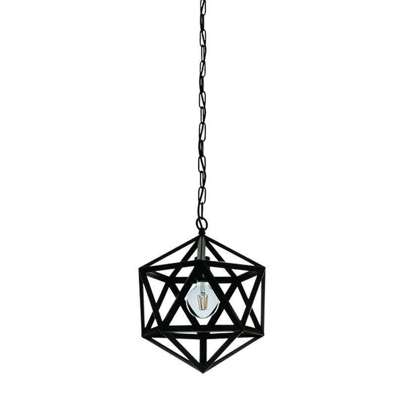 Πρόκειται για ένα μεταλλικό κρεμαστό φωτιστικό σε χρώμα μαύρο. Η μίνιμαλ γεωμετρική του σχεδίαση το τοποθετεί σε οποιονδήποτε μοντέρνο εσωτερικό χώρο. Η ανάρτησή του ρυθμίζεται για να λάβει το επιθυμητό ύψος. Το φως διαχέεται σε όλον τον χώρο ομοιόμορφα.
