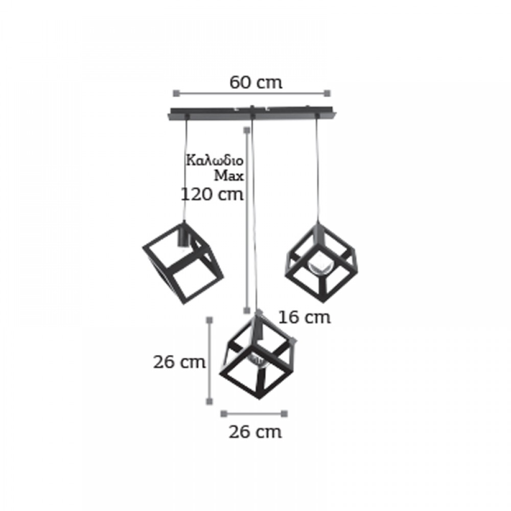 InLight Κρεμαστό φωτιστικό από μαύρο μέταλλο (4400-3-BL-ΡΑΓΑ)