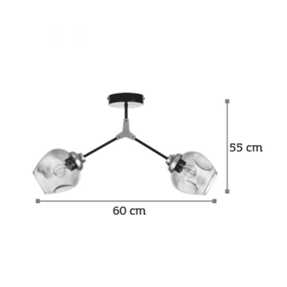 Πρόκειται για ένα μεταλλικό κρεμαστό φωτιστικό μαύρου χρώματος με νίκελ διακριτικά στοιχεία και δύο λαμπτήρες. Το γυαλί είναι φιμέ, αλλά υπάρχει και η επιλογή του διάφανου χρώματος. Η μίνιμαλ σχεδίασή του το τοποθετεί σε οποιονδήποτε μοντέρνο εσωτερικό χώρο.