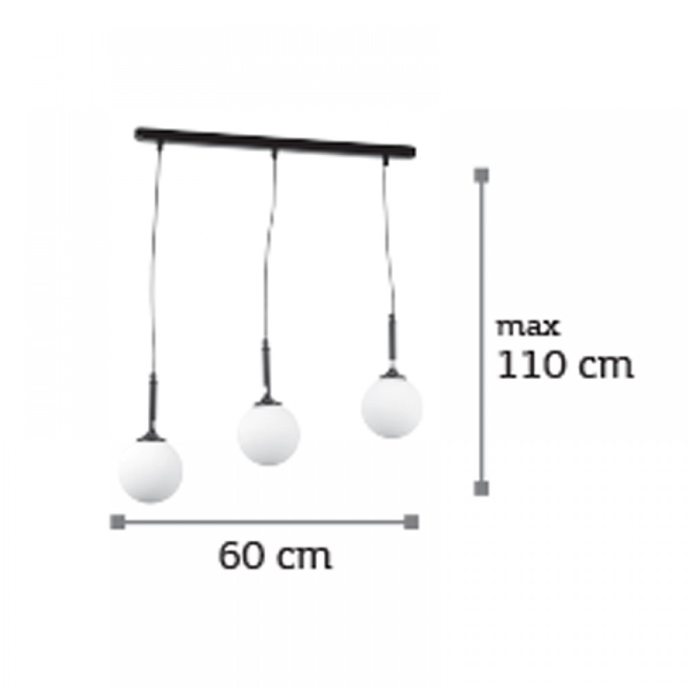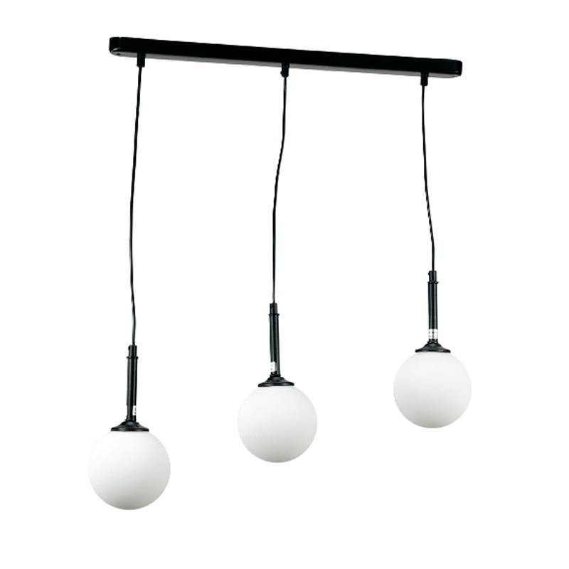 Πρόκειται για ένα μαύρο μεταλλικό φωτιστικό με λευκή οπαλίνα και τρεις λαμπτήρες. Το ύψος μπορεί να ρυθμιστεί ώστε να προσαρμοστεί στον μοντέρνο χώρο τοποθέτησής του.