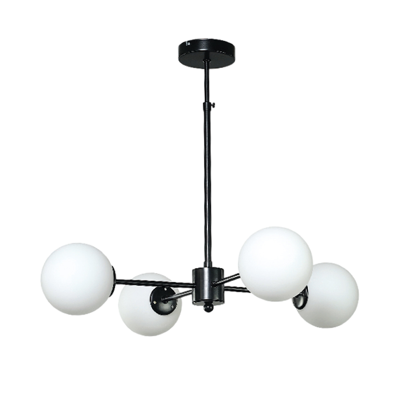 Πρόκειται για ένα μαύρο μεταλλικό φωτιστικό με λευκή οπαλίνα στο τελείωμα και τέσσερις λαμπτήρες. Η μίνιμαλ σχεδίασή του το τοποθετεί ιδανικά σε οποιονδήποτε μοντέρνο εσωτερικό χώρο, ακόμα και αν είναι χαμηλοτάβανος.