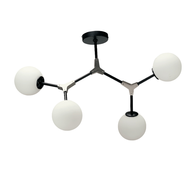 Πρόκειται για ένα κρεμαστό φωτιστικό από μαύρο μέταλλο και νίκελ ματ λεπτομέρειες. Η λευκή οπαλίνα δένει αρμονικά με το υπόλοιπο σώμα και διαχέει το φως ομοιόμορφα σε όλον τον χώρο. Οι βραχίονες κινούνται για να πάρουν το επιθυμητό σχήμα.