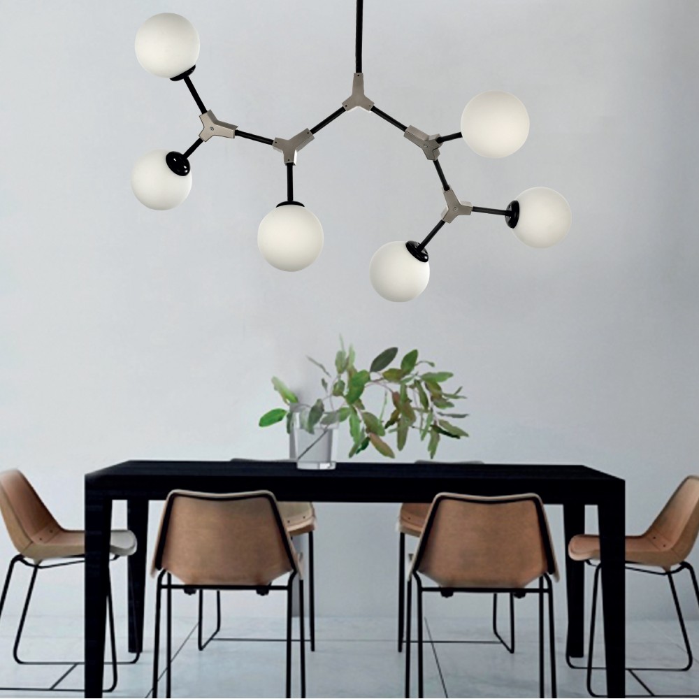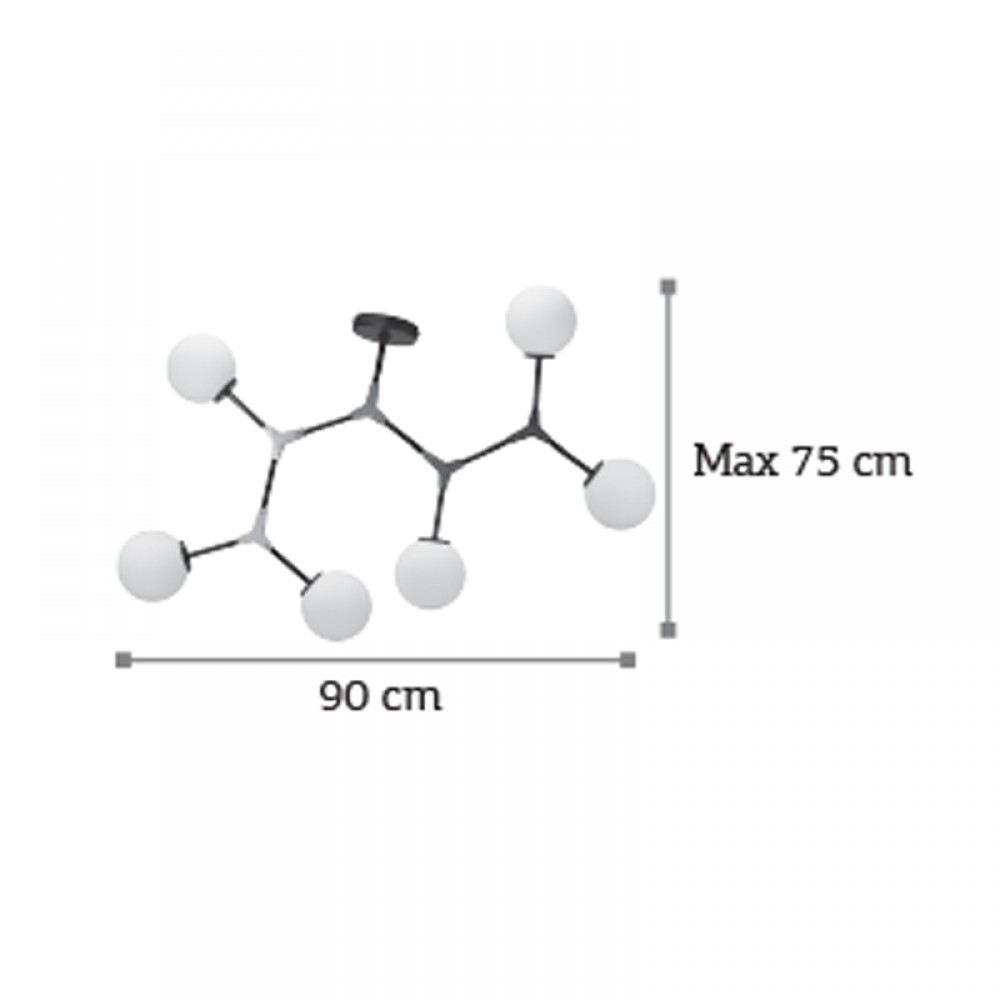 Πρόκειται για ένα κρεμαστό φωτιστικό από μαύρο μέταλλο και χρυσαφί λεπτομέρειες. Η λευκή οπαλίνα δένει αρμονικά με το υπόλοιπο σώμα και διαχέει το φως ομοιόμορφα σε όλον τον χώρο. Οι βραχίονες κινούνται για να πάρουν το επιθυμητό σχήμα.