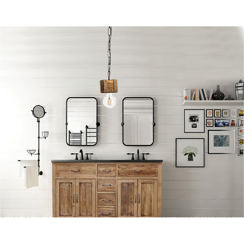 Πρόκειται για μονόφωτο κρεμαστό που συνδυάζει αρμονικά το ξύλο και το σχοινί. Το προϊόν ολοκληρώνει η μαύρη αλυσίδα που του επιτρέπει να προσαρμόζεται ιδανικά στον κάθε χώρο. Μπορεί να τοποθετηθεί είτε ως μονάδα είτε δύο ή τρία μαζί σε ράγα ή ροζέτα για ένα πιο φωτεινό αποτέλεσμα.
