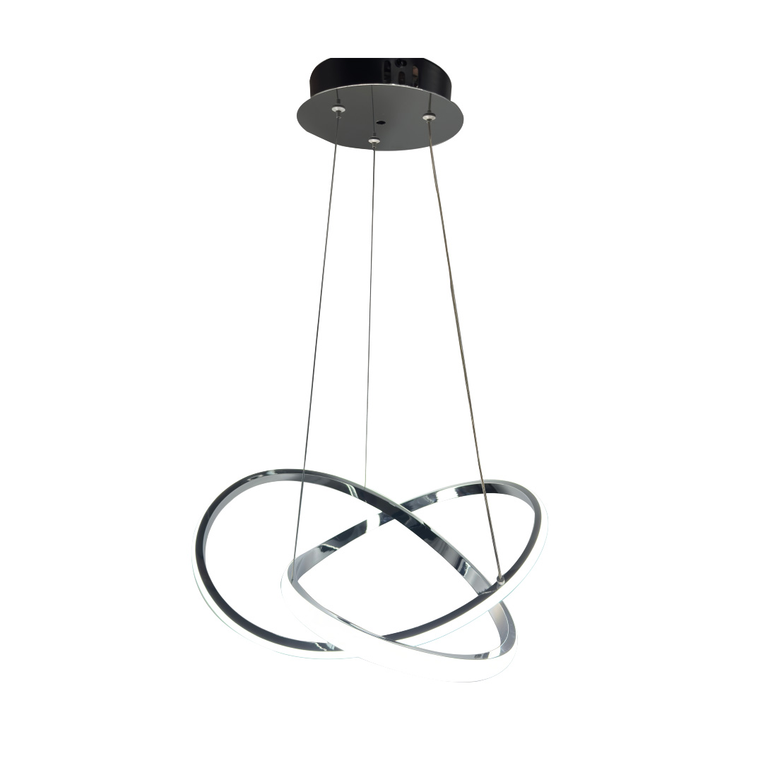 Πρόκειται για κρεμαστό φωτιστικό κατασκευασμένο από λευκό ακρυλικό και χρώμιο μέταλλο μίνιμαλ σχεδίασης.Ο φωτισμός led μπορεί να λάβει από θερμή ως και ψυχρή απόχρωση και είναι ρυθμιζόμενο από τη βάση.