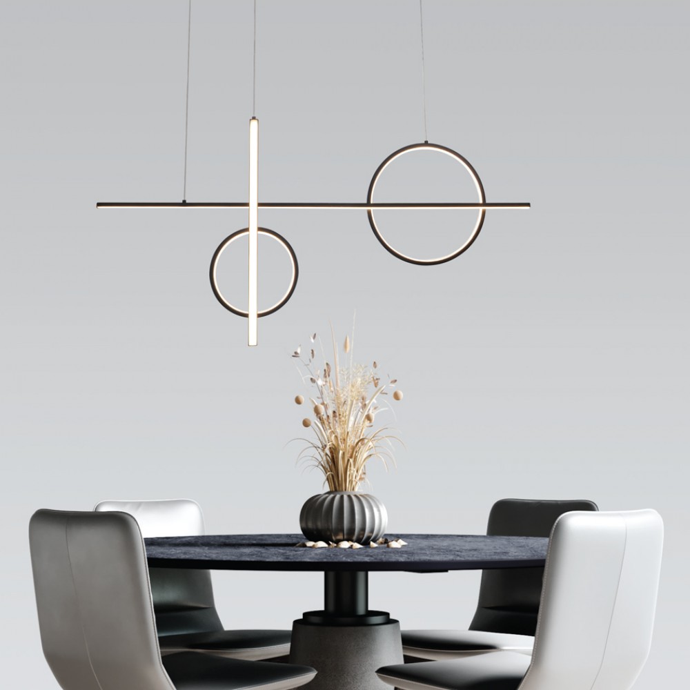 Πρόκειται για ένα μαύρο μεταλλικό κρεμαστό φωτιστικό μίνιμαλ σχεδίασης. Η λευκή ακρυλική του επιφάνεια καλύπτει τον LED φωτισμό 3CCT απόδοσης.