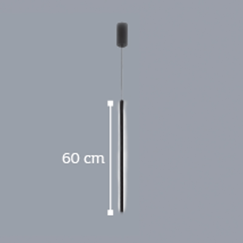 Πρόκειται για ένα γραμμικό κρεμαστό φωτιστικό από μαύρο μέταλλο. Το λευκό ακρυλικό καλύπτει τον led φωτισμό θερμής απόδοσης. Η ανάρτησή του είναι ρυθμιζόμενη για να προσαρμόζεται στον κάθε χώρο.