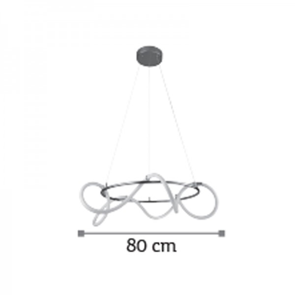 Πρόκειται για ένα κρεμαστό φωτιστικό με αφαιρετική σχεδίαση. Το μέταλλο σε απόχρωση χρωμίου συμπληρώνει τον led φωτιζόμενο και εύκαμπτο σωλήνα θερμής απόχρωσης. Το φως διαχέεται σε όλον τον χώρο και η ανάρτησή του είναι ρυθμιζόμενη. Διακοσμεί ιδανικά οποιονδήποτε μοντέρνο εσωτερικό χώρο.