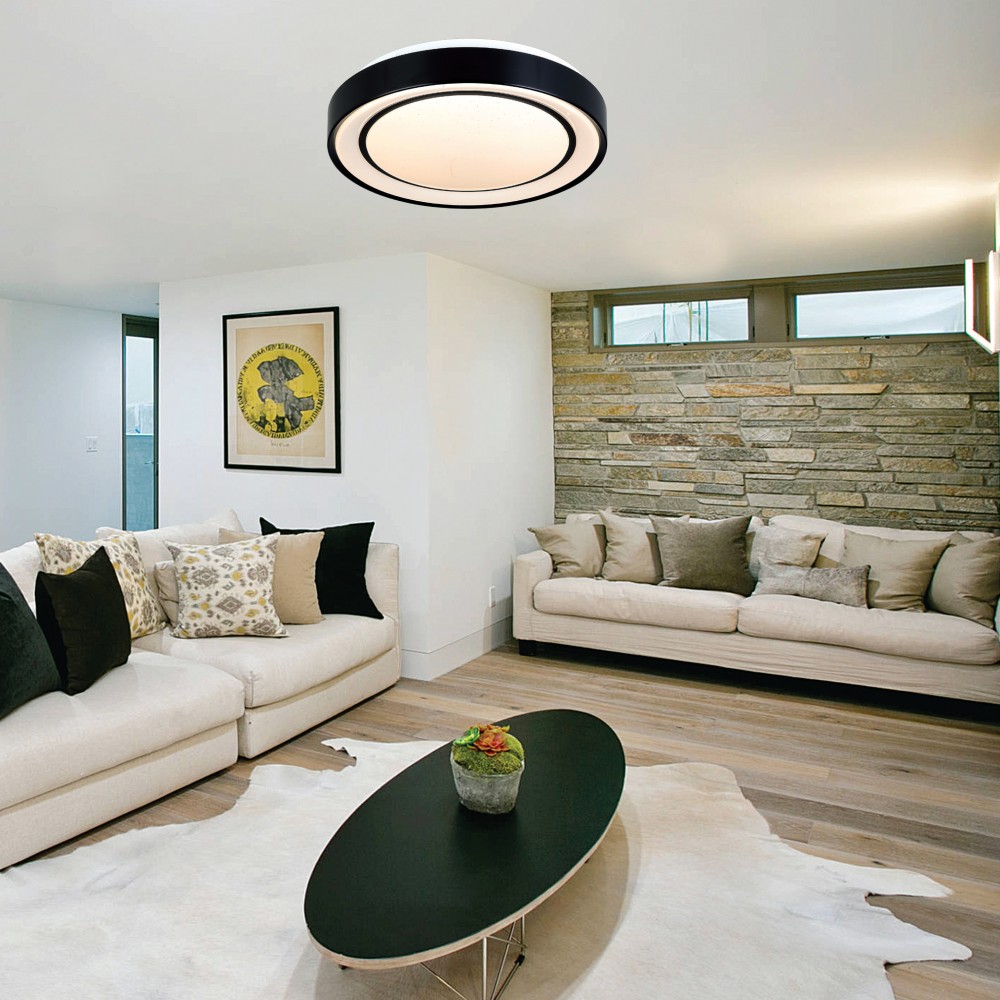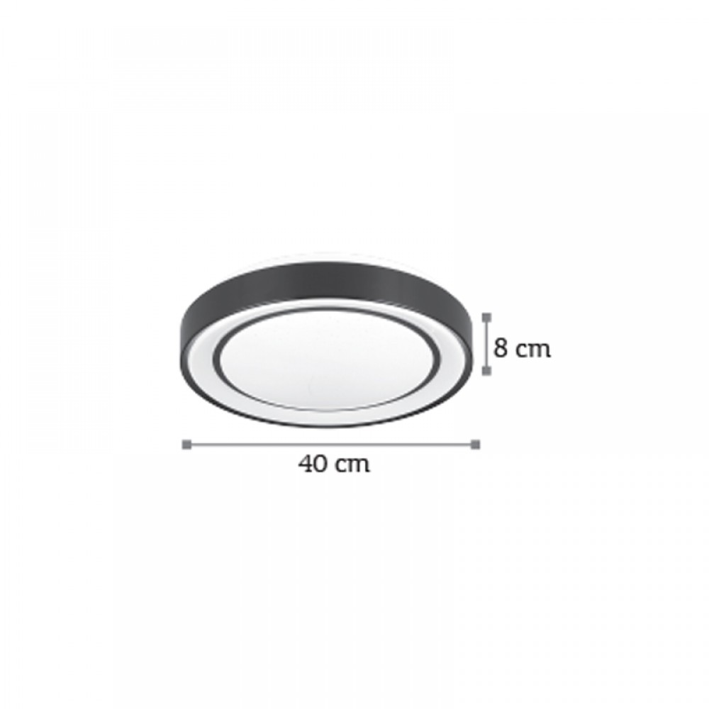 Πρόκειται για ένα φωτιστικό οροφής από μαύρο μέταλλο κυκλικής σχεδίασης. Ο led φωτισμός θερμής απόχρωσης διαχέεται στον χώρο.