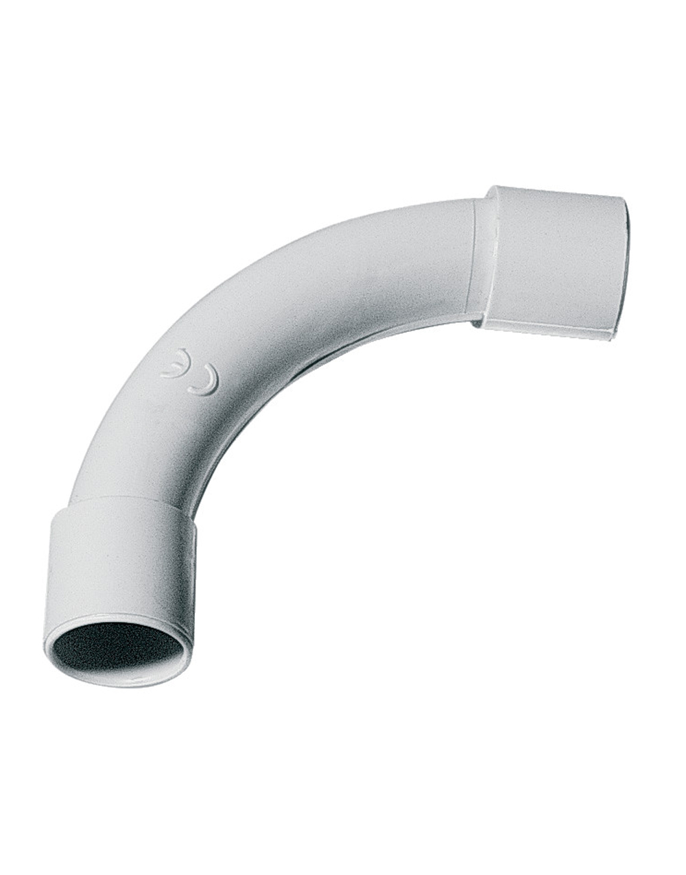 Σύνδεση σωλήνας Φ32 σε καμπύλη σε γκρι χρώμα από τεχνοπολυμερές χωρίς αλογόνο. Είναι ανθεκτικό σε υψηλή θερμότητα. Ο βαθμός στεγανότητας είναι IP40.