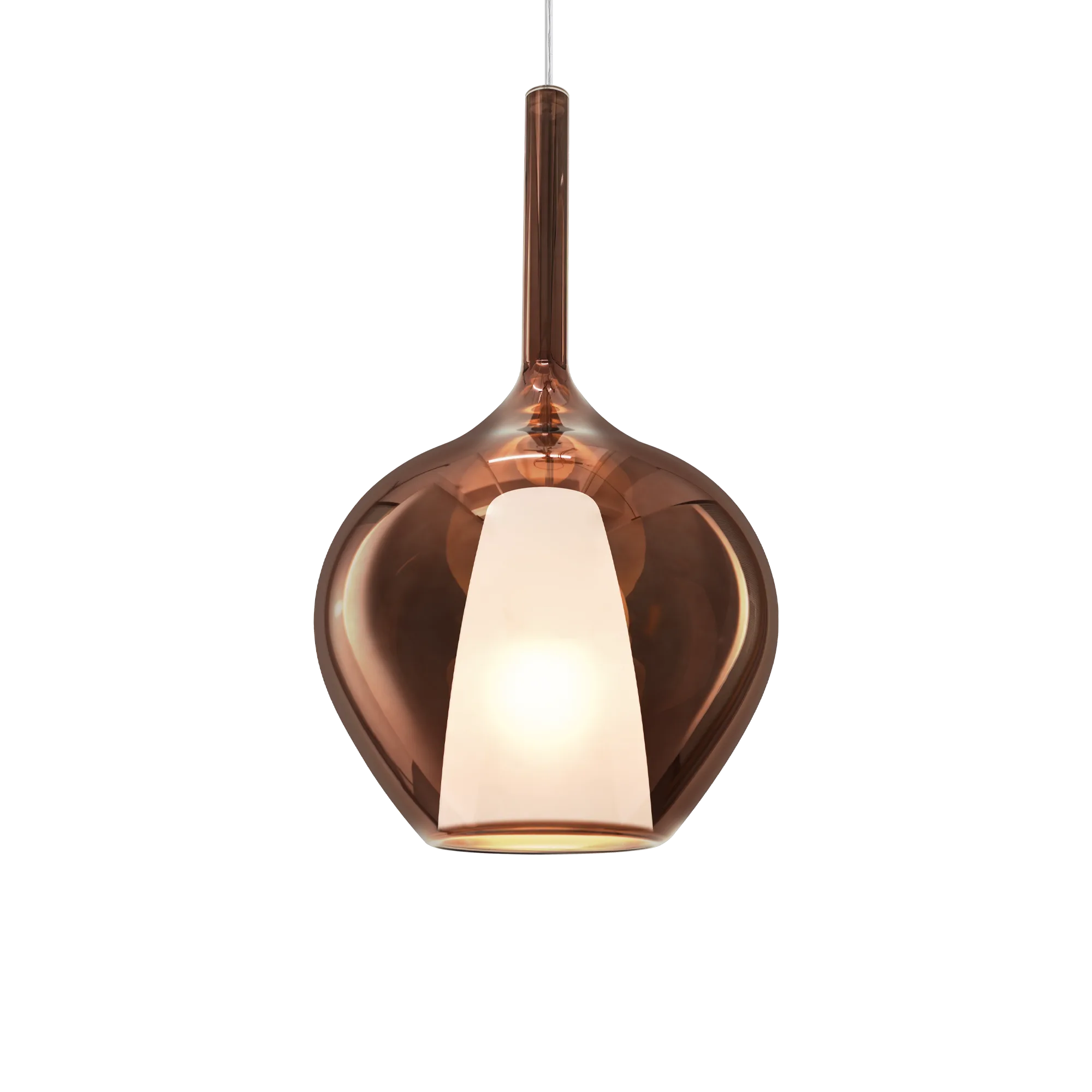 Το Ideal Lux Kalique SP1-1 d18 Copper είναι ένα κομψό και σύγχρονο κρεμαστό φωτιστικό που συνδυάζει minimal σχεδιασμό με υψηλής ποιότητας κατασκευή. Ξεχωρίζει για τον διπλό diffuser από blown borosilicate glass, όπου το εσωτερικό satin glass απαλύνει τη φωτεινότητα, ενώ το εξωτερικό Copper finish δημιουργεί μια ζεστή, μεταλλική απόχρωση που προσφέρει elegant και ατμοσφαιρικό φωτισμό.