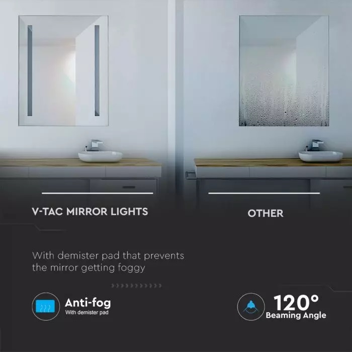 Καθρέφτης LED Αντιθαμβωτικός Φωτιζόμενος 42W με Διακόπτη Αφής V-TAC 80x60cm Ψυχρό Λευκό 6400K – 2140471