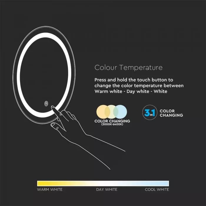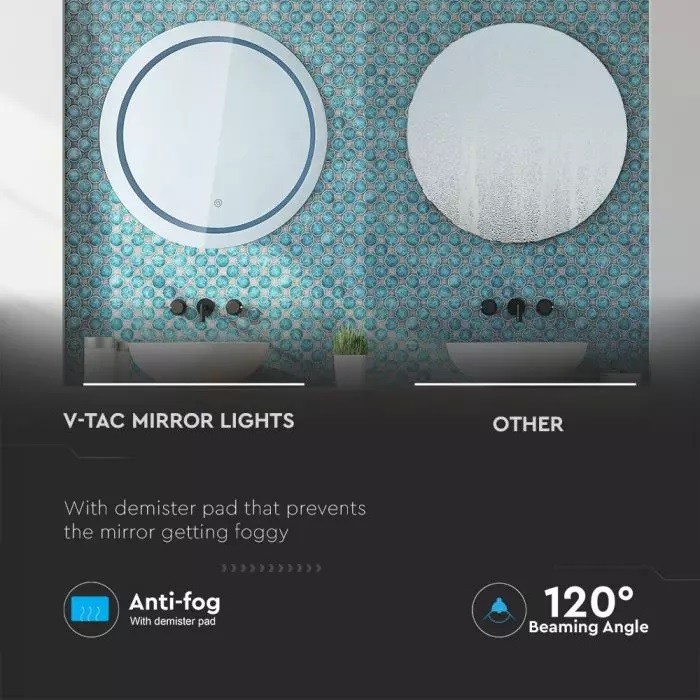 Καθρέφτης LED Αντιθαμβωτικός Στρογγυλός Φ60 3 σε 1 CCT με Διακόπτη ΑφήςV-TAC 25W σε Ψυχρό Λευκό – 2140491