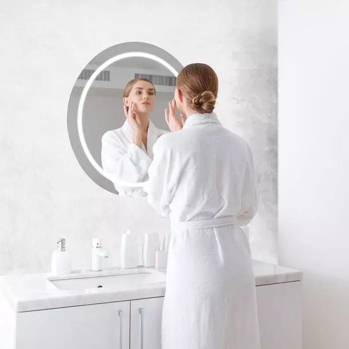 Το V-Tac VT-8602 SKU 2140491 είναι μια επιτοίχια λάμπα καθρέφτη LED με ισχύ 25W και ενσωματωμένο φωτιστικό. Στρογγυλή κατασκευή από σίδηρο, με μεγάλο γυάλινο καθρέφτη στο μπροστινό μέρος. Καθαρός, μοντέρνος και κομψός σχεδιασμός. Δέσμη φωτός 110 ° και φωτεινή ροή 85 lm με αναλογία 3 lm/W . Επιπλέον, χάρη στον βαθμό προστασίας IP44 , είναι επίσης ιδανικό για χρήση σε πολύ υγρά περιβάλλοντα. Εξοπλισμένο με αντιθαμβωτικό μηχανισμό, το οποίο μειώνει σημαντικά τον σχηματισμό συμπύκνωσης ατμών που σχηματίζεται το μπάνιο, διατηρώντας τη λειτουργικότητα του καθρέφτη. Μέσω ενός ειδικού πλήκτρου αφής μπορείτε να ανάψετε ή να απενεργοποιήσετε τον φωτισμό. Ε.