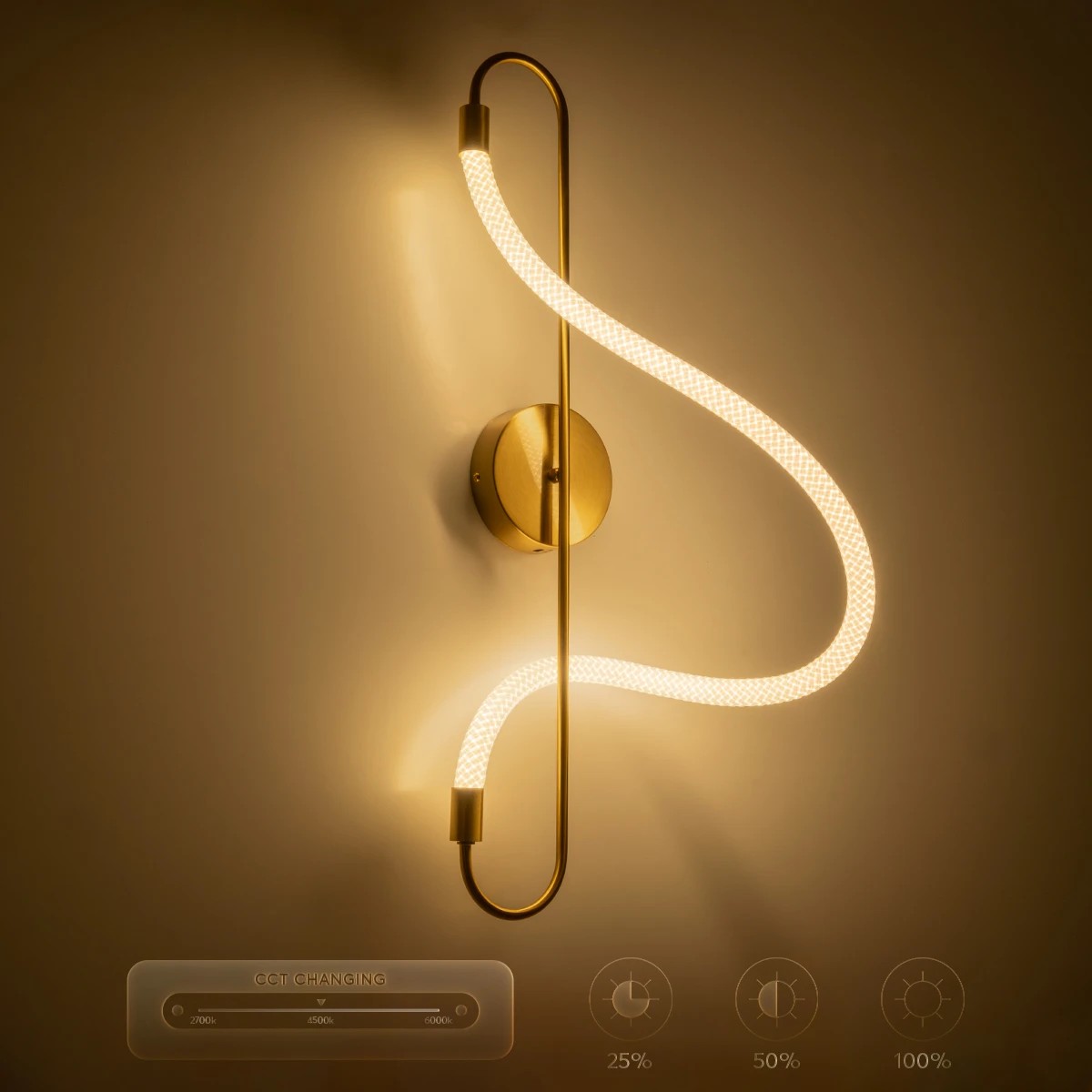 kelvo® GLOW 61683 Μοντέρνο Φωτιστικό Τοίχου – Απλίκα LED 18W 1800lm 360° AC 220-240V IP20 Ρυθμιζόμενο Λευκό CCT με On/Off 2700K/4500K/6000K – Lumileds SMD Chip – Χρυσό Πλατίνα & Λευκό Νήμα – Μ30 x Π15 x Υ70cm – 3 Χρόνια Εγγύηση