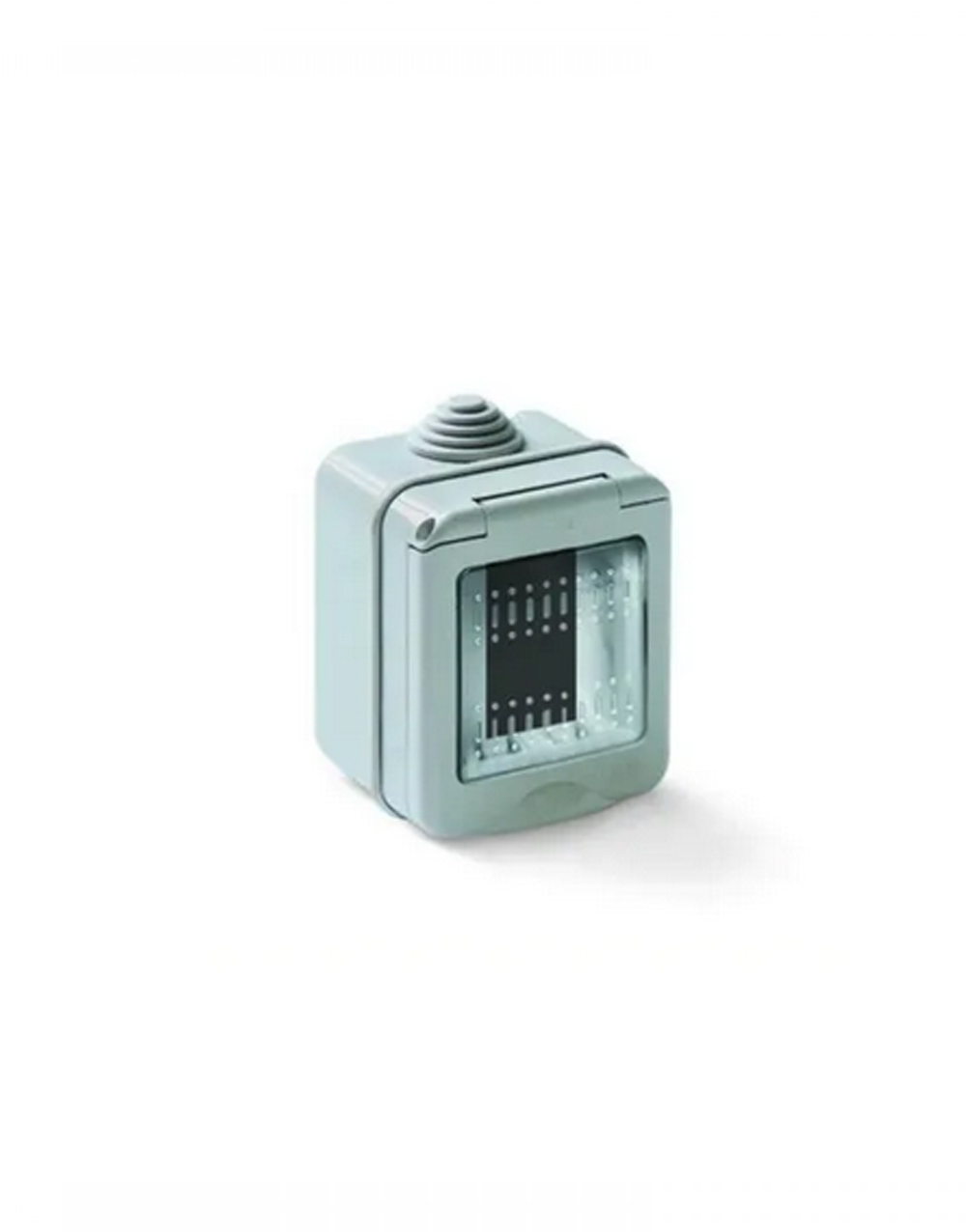 Επιτοίχιο κουτί με καπάκι της σειράς Elettrocanali My Life σε γκρι ματ χρώμα. Είναι από θερμοπλαστικό υλικό και η τοποθέτηση γίνεται με βιδωτό τρόπο. Είναι κατάλληλο για 1 στοιχείο. O βαθμός στεγανότητας είναι IP55.