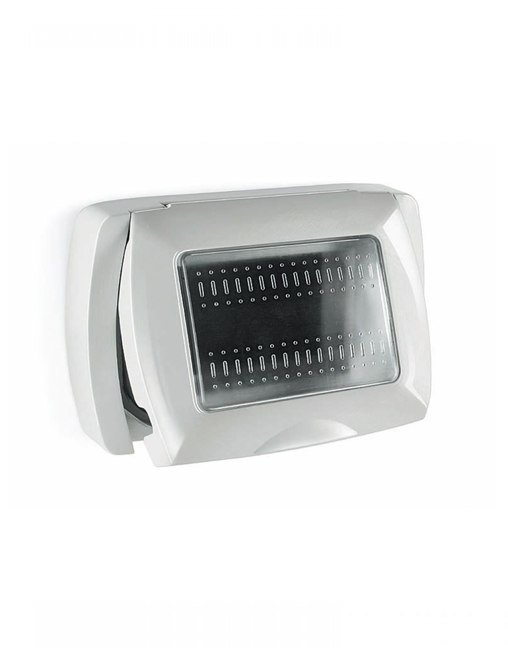 Επιτοίχια πρόσοψη με καπάκι αυτόνομη για χωνευτό κουτί της σειράς Elettrocanali My Life σε γκρι ματ χρώμα. Είναι από θερμοπλαστικό υλικό και η τοποθέτηση γίνεται με βιδωτό τρόπο. Είναι κατάλληλο για 3 στοιχεία. O βαθμός στεγανότητας είναι IP55.