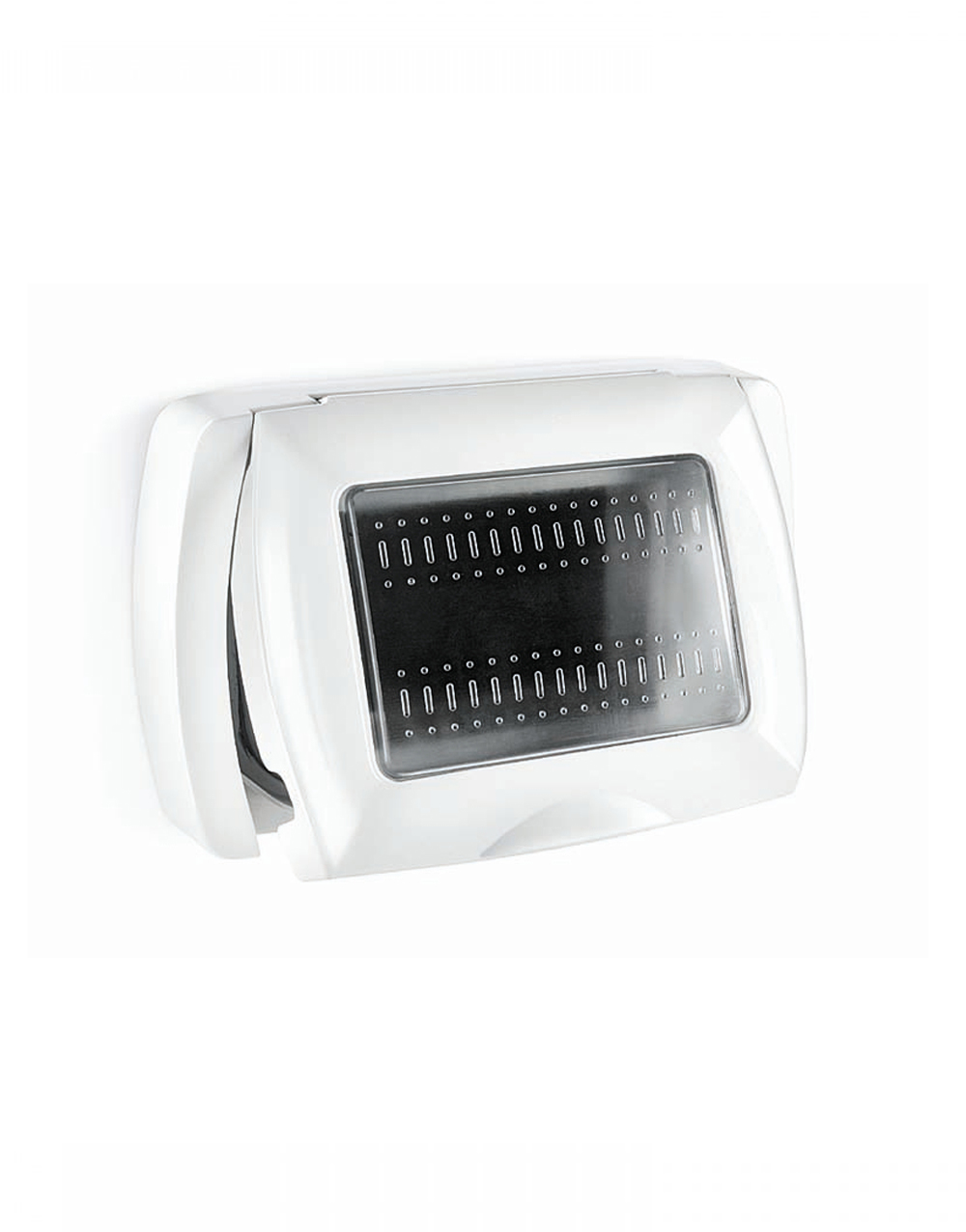 Επιτοίχια πρόσοψη με καπάκι αυτόνομη για χωνευτό κουτί της σειράς Elettrocanali My Life σε λςυκό ματ χρώμα. Είναι από θερμοπλαστικό υλικό και η τοποθέτηση γίνεται με βιδωτό τρόπο. Είναι κατάλληλο για 3 στοιχεία. O βαθμός στεγανότητας είναι IP55.
