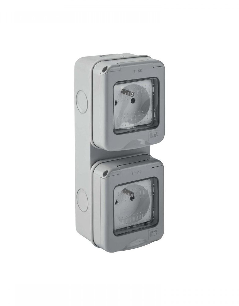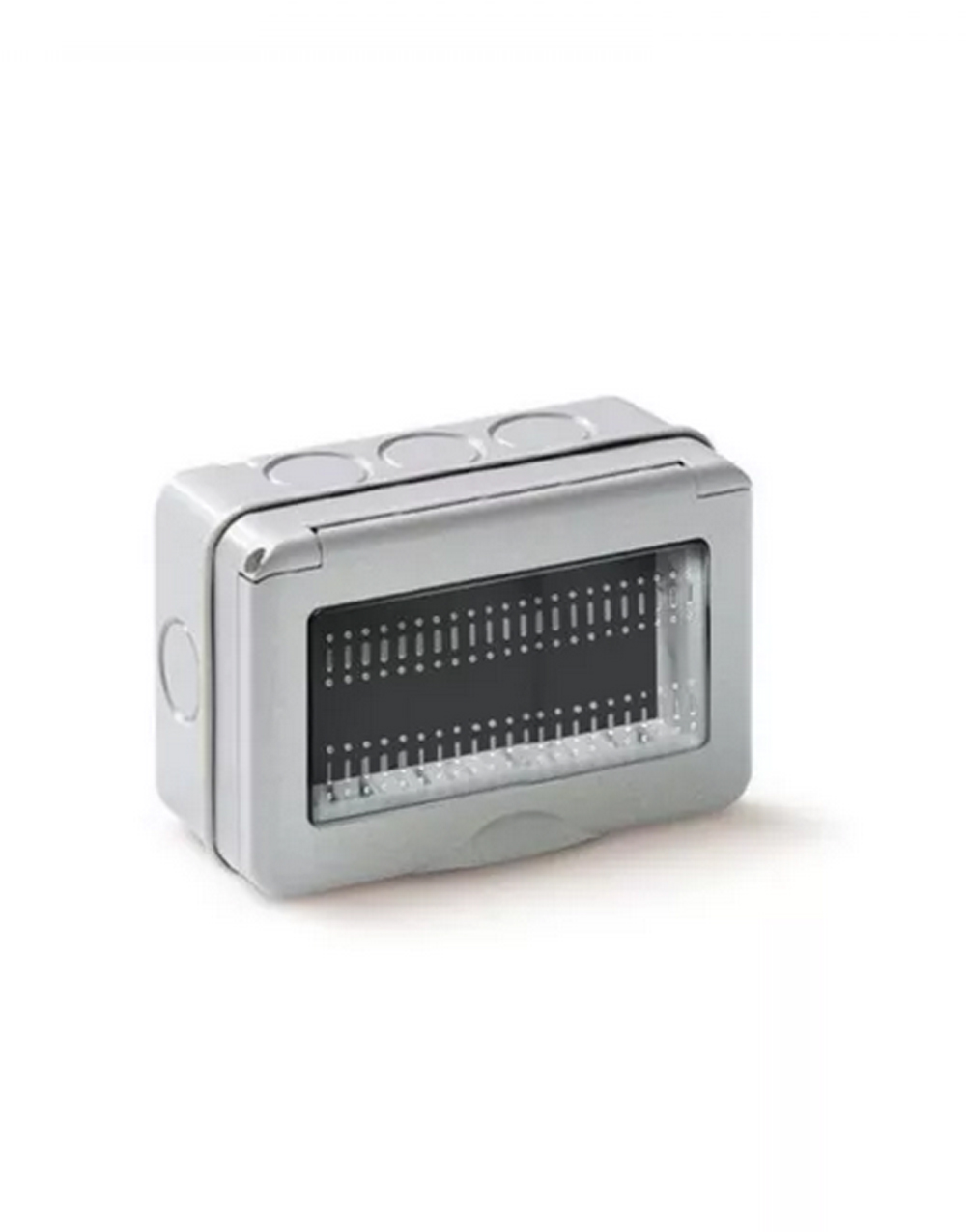 Επιτοίχιο κουτί με καπάκι της σειράς Elettrocanali My Life σε γκρι ματ χρώμα. Είναι από θερμοπλαστικό υλικό και η τοποθέτηση γίνεται με βιδωτό τρόπο. Είναι κατάλληλο για 4 στοιχεία. O βαθμός στεγανότητας είναι IP55.