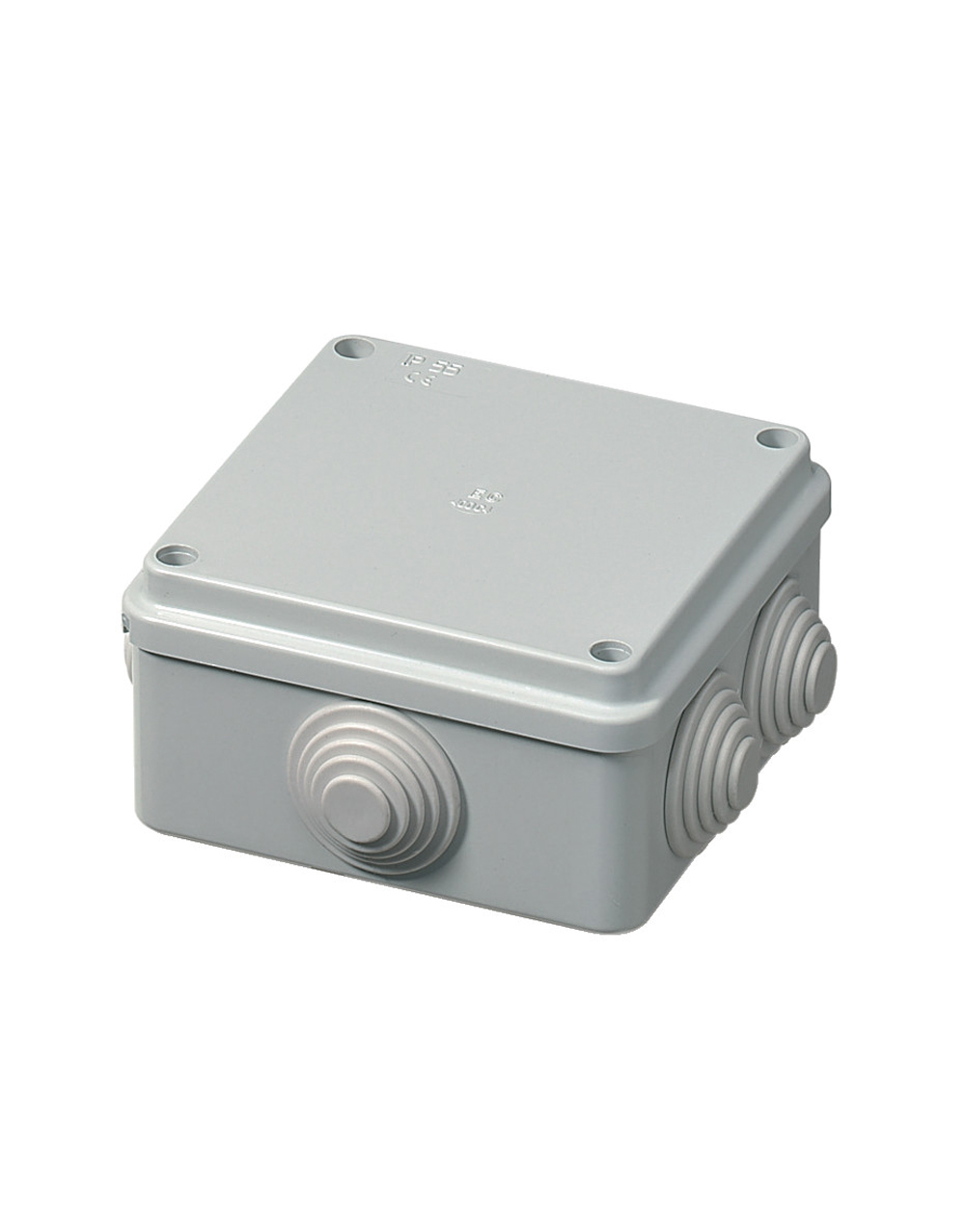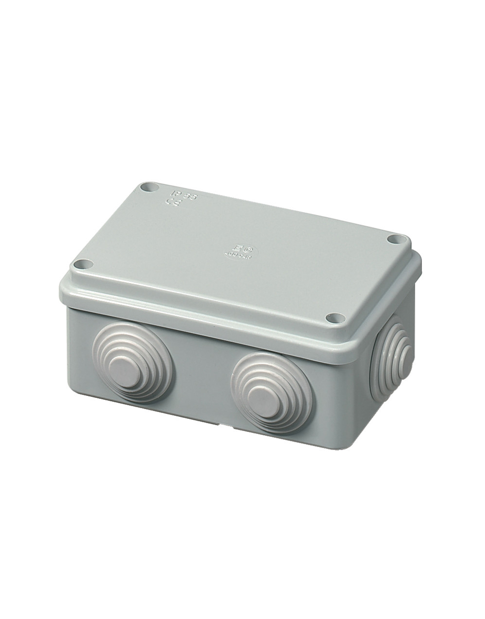 Κουτί διακλάδωσης με στυπιοθλήπτη και απευθείας είσοδο ή είσοδο με ευθή σωλήνα σε γκρι χρώμα από ABS. Ο βαθμός στεγανότητας είναι IP55 και το κουτί περιέχει 6 εισόδους. Η στερέωση γίνεται με βίδα εσωτερικά του κουτιού. Διαθέτει εσωτερικό οδηγό για τη στερέωση της ράγας. Διαθέτει προστασία UV.