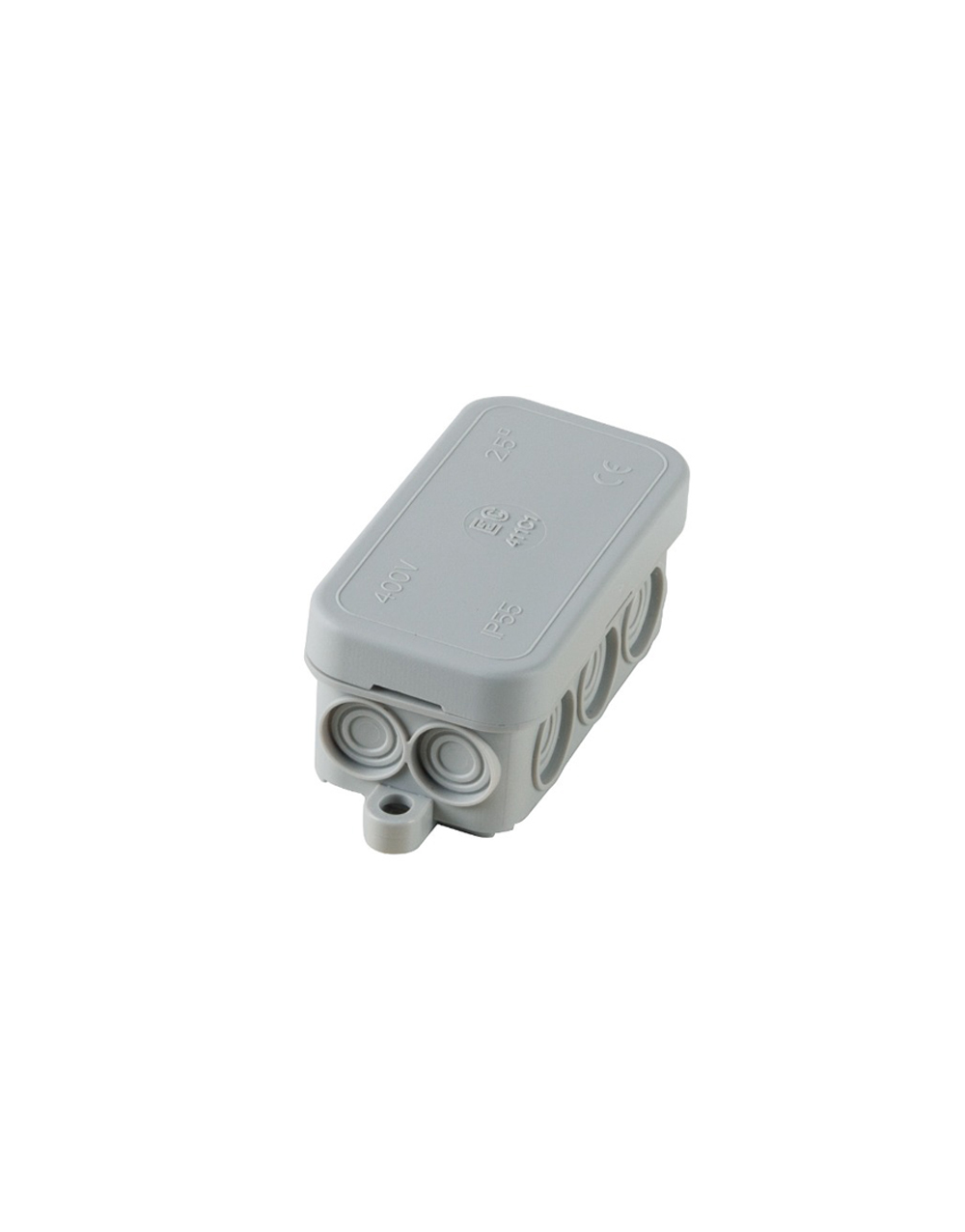 Κουτί διακλάδωσης με στυπιοθλήπτη και απευθείας είσοδο ή είσοδο με ευθή σωλήνα σε γκρι χρώμα από πολυαιθυλένιο. Ο βαθμός στεγανότητας είναι IP55 και το κουτί περιέχει 10 εισόδους. Δεν περιέχει αλογόνο και η στερέωση γίνεται με βίδα εξωτερικά του κουτιού. Διαθέτει προστασία UV.