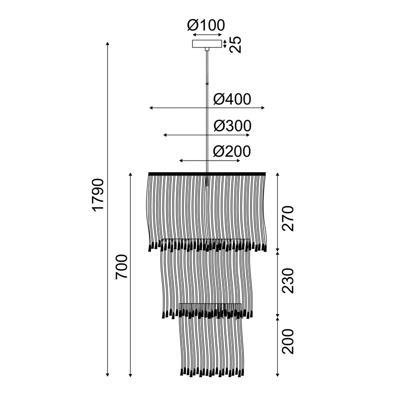 ΚΡΕΜΑΣΤΟ Φ/Σ 1ΧΕ27 THASSOS ΕΚΡΟΥ ΜΑΛΛΙΝΟ D40XH180CM ACA – TF20261P