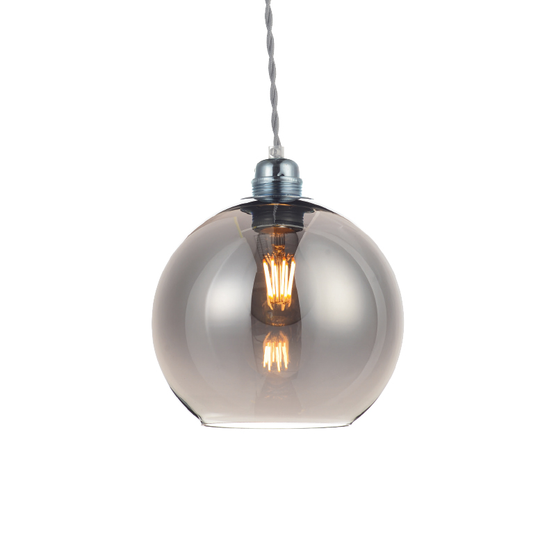 Κρεμαστό Φωτιστικό 1ΧΕ27 Διάφανο Γκρι Γυαλί Φ200 Χρυσή Ανάρτηση – V3643320GY