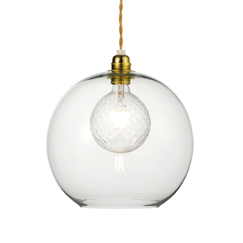 Κρεμαστό Φωτιστικό 1ΧΕ27 Διάφανο Γυαλί Φ300 Χρυσή Ανάρτηση ACA – V3643330CL
