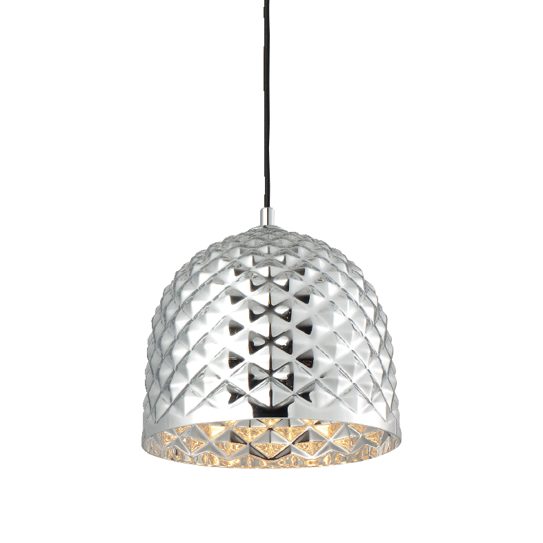 Κρεμαστό Φωτιστικό 1ΧΕ27 Γυαλί Χρώμιο Πολυγωνικό Φ240 ACA – V36352CH