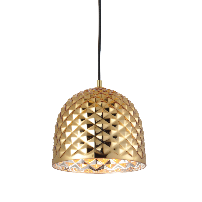 Κρεμαστό Φωτιστικό 1ΧΕ27 Γυαλί Ορειχάλκινο Πολυγωνικό Φ240 ACA – V36352PB