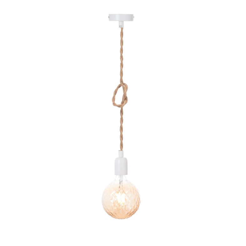 Κρεμαστό Φωτιστικό 1ΧΕ27 Λευκό Μέταλλο+Σχοινί ACA – 40WRR