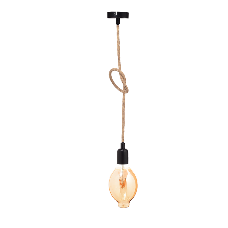 Κρεμαστό Φωτιστικό 1ΧΕ27 Μαύρο Μέταλλο +Σχοινί Διπλής Πλέξης Η100CM ACA – 40BRT