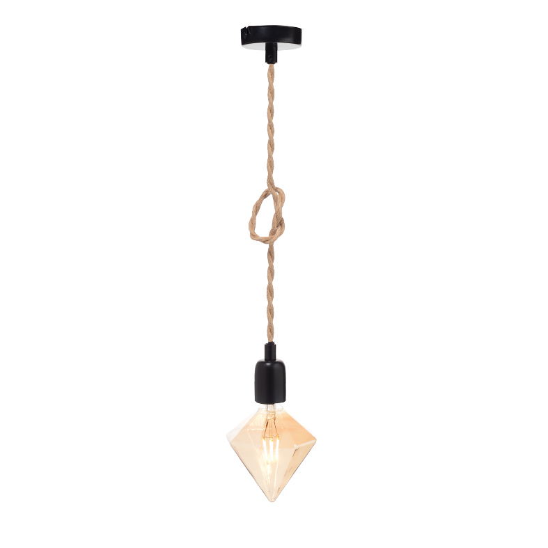 Κρεμαστό Φωτιστικό 1ΧΕ27 Μαύρο Μέταλλο+Σχοινί ACA – 40BRR