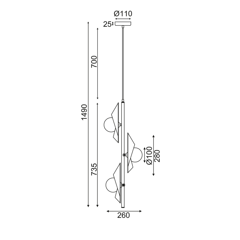 ΚΡΕΜΑΣΤΟ ΦΩΤΙΣΤΙΚΟ 3ΧG9 ΧΡΥΣΟ/ΜΑΥΡΟ ΜΕΤ/ΚΟ + ΓΥΑΛΙ 26Χ26ΧΗ150CM POLYGON ACA – HL42593P26BG