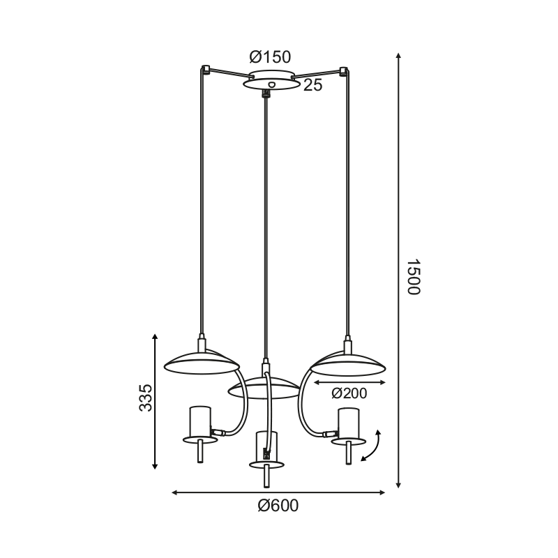 ΚΡΕΜΑΣΤΟ ΦΩΤΙΣΤΙΚΟ 3ΧGU10 ΜΑΥΡΟ ΜΕΤΑΛΛΙΚΟ D60XH150CM PARACHUTE ACA – ZM933P60B